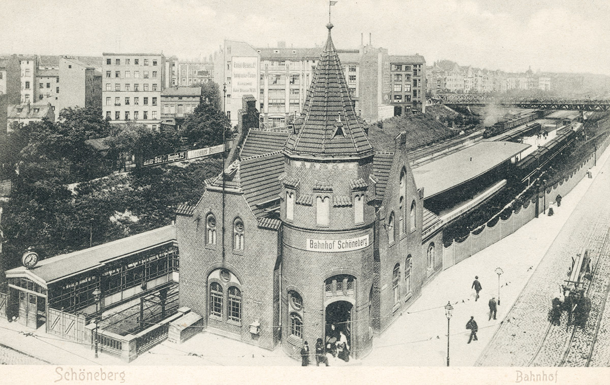 1881 wurde der Bahnhof Schöneberg an der Kolonnenstraße mit einem einfachen Seitenbahnsteig eröffnet. Hier hielten zunächst die Züge der Ringbahn, die damals den Potsdamer Bahnhof in Berlin anfuhr. Wegen des zunehmenden Verkehrs wurde der Bahnhof 1891 umgebaut, mit einem Mittelbahnsteig und einem neogotischen Eingangsgebäude an der Sedanbrücke.