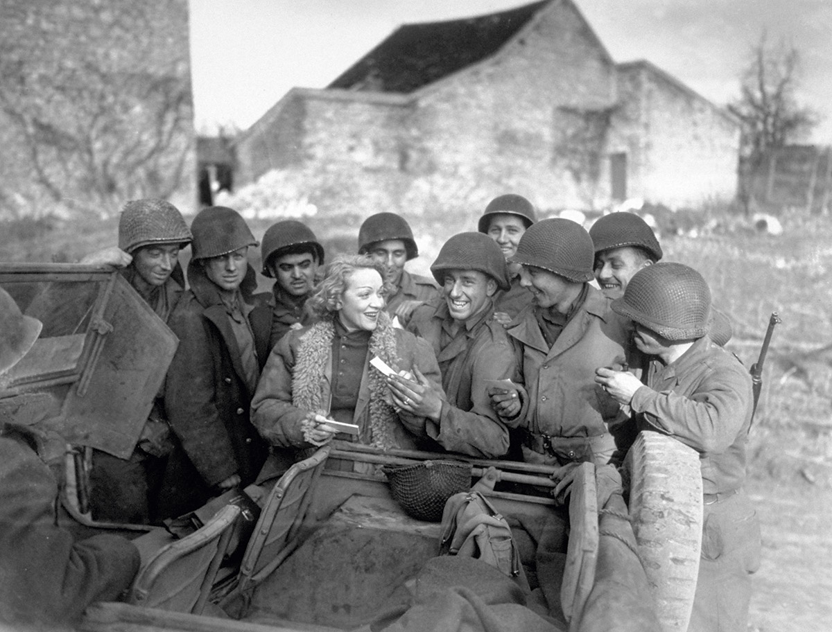 Marlene Dietrich widerstand dem Werben der Nationalsozialisten, die den internationalen Filmstar gerne nach Deutschland zurückholen wollten. Stattdessen legte sie 1939 die deutsche Staatsbürgerschaft ab. Sie unterstützte Emigrant_innen und unterbrach ihre schauspielerische Tätigkeit, um vor amerikanischen Truppen in Afrika und Europa aufzutreten.